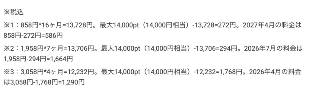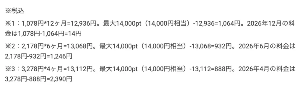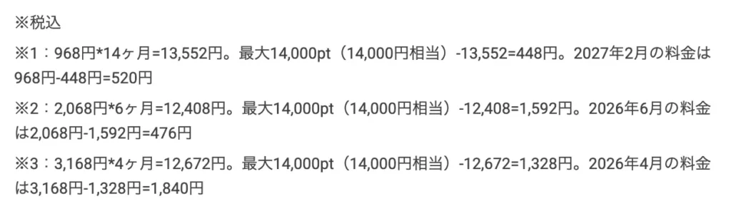 MNPで14,000ptを受け取る場合 | ・1回目:4,000pt ・2回目:5,000pt ・3回目:5,000pt |
