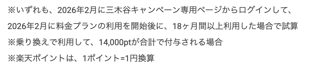 三木谷キャンペーンでは最大14,000ポイントが進呈されます。ポイントは3回に分割して付与されるため、全額受け取るまでにタイムラグがあることも押さえておきましょう。