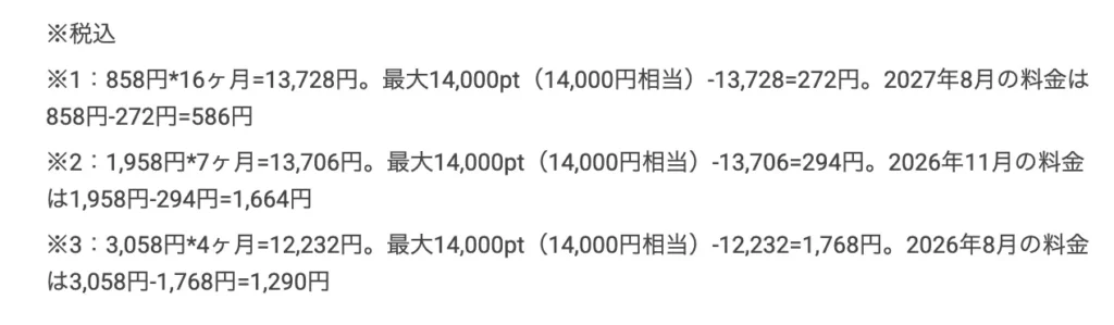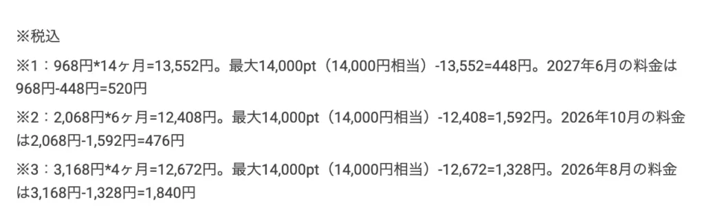 | MNPで14,000ptを受け取る場合 | ・1回目:4,000pt ・2回目:5,000pt ・3回目:5,000pt |
